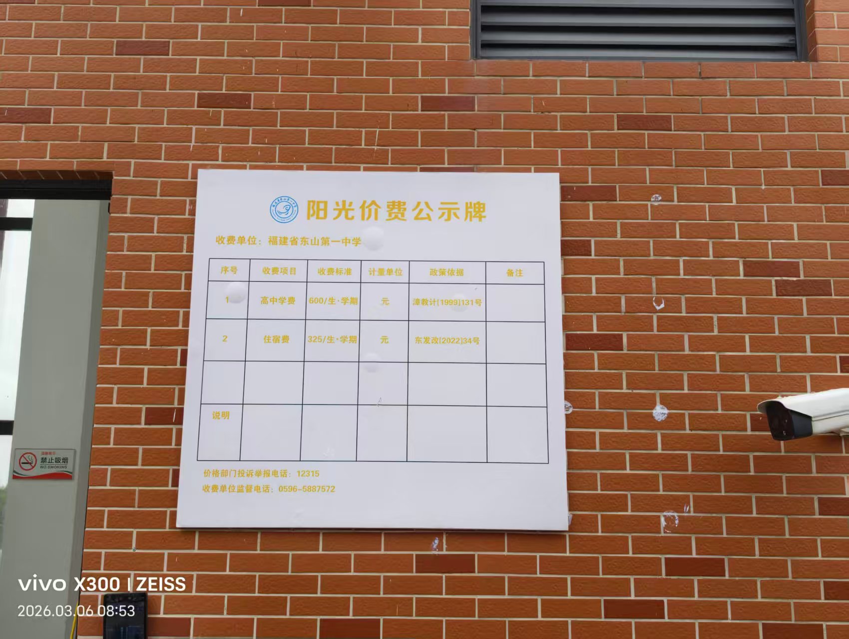 • 福建省东山第一中学阳光价费公示