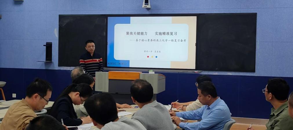课堂展示结束后, 漳州一中吴吉庆老师开展《聚焦关键能力 实施精准复习 —— 基于核心素养的高三化学一轮复习备考》的专题讲座。讲座围绕元素化合物知识复习这一板块,结合教学痛点、方法创新与实践案例,为在场高三化学教师提供了兼具理论高度与实操性的复习指导方案,引发热烈反响。